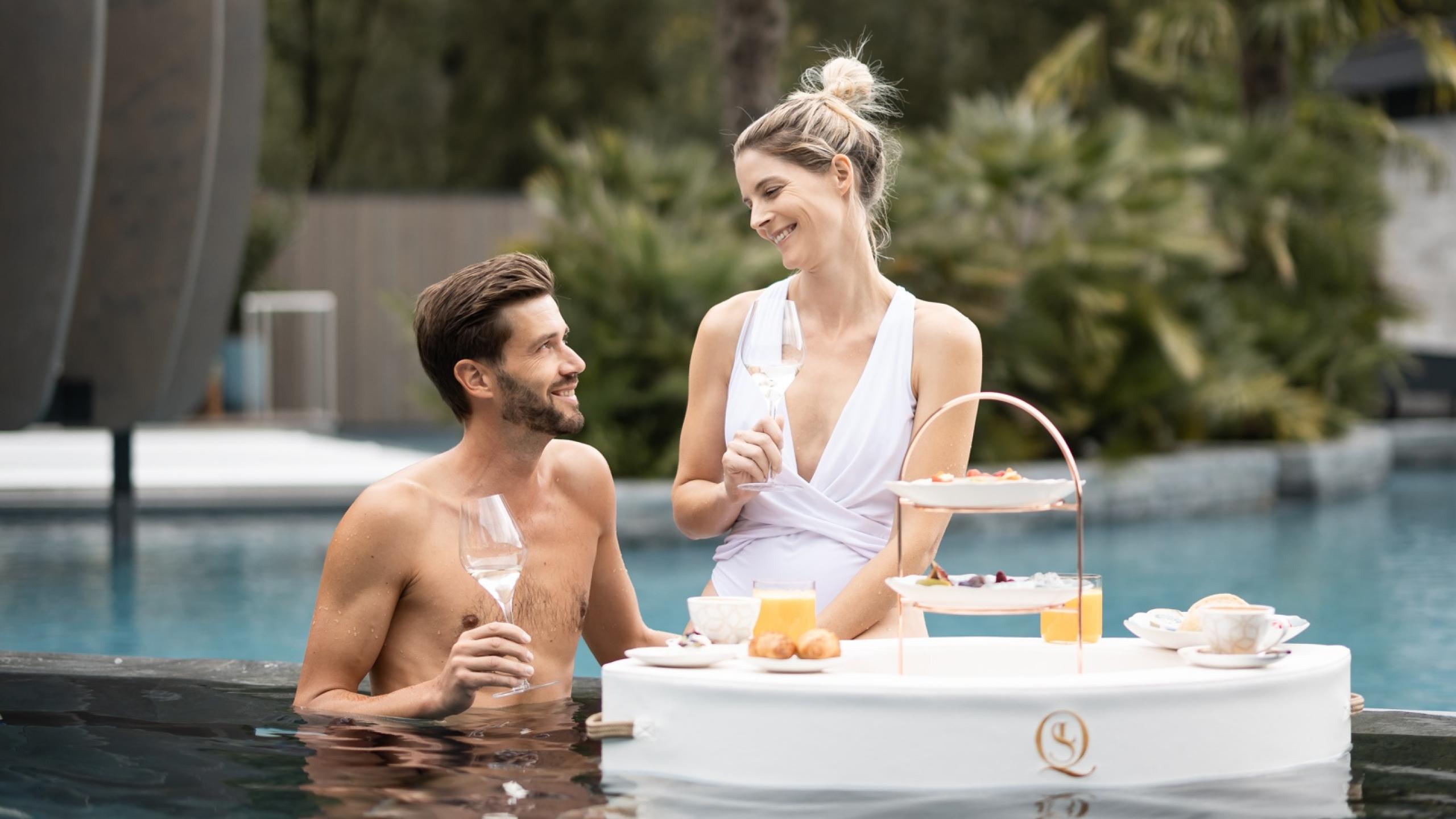 Enjoy breakfast from your private pool or whirlpool, as you take in the view of the lake and surrounding mountains. Sweet and savoury delicacies are served on a floating board, and accompanied by a fine bottle of Pommery Royal Champagner or a Quellenhof Prosecco for moments of uncompromising bliss.
